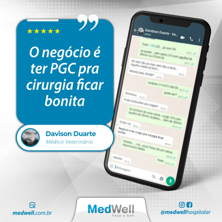 “É com muita alegria que contamos com o apoio da MedWell. Uma empresa sinônimo de qualidade em fios de sutura e que se preocupa, juntamente conosco, com o desenvolvimento da medicina veterinária no Brasil”.