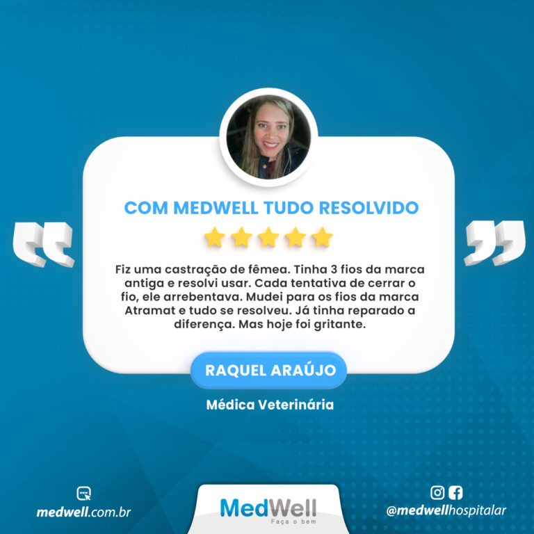 “Tenho usado os fios de sutura de polipropileno da MedWell e o índice de reação em procedimentos internos, pele e musculaturas reduziram muito. Trabalho com criadores de gatos e eles adoram o pós operatório sem reação. Quase zero”